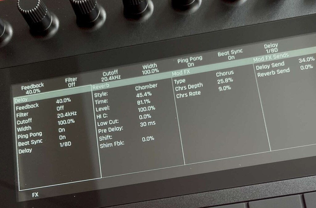 - Complete FX: delay, reverb, chorus, flanger, phaser, overdrive with per-track routing