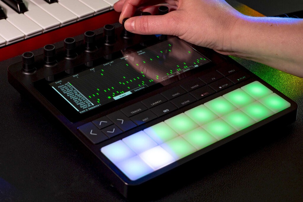 It’s not a tracker – though you could use this as a mixer/hub with a tracker device. But it does give you extensive, detailed control over effects and sequencing, in addition to Live-style clip launching and full mixing.