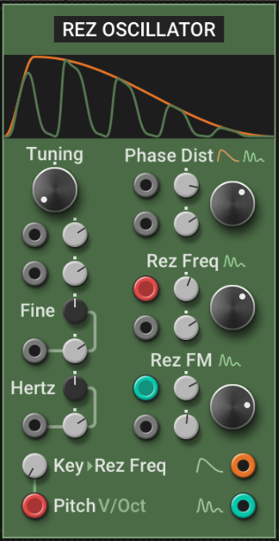 This is another 80s-style oscillator, and really, this is yet another module that’s only in Multiphonics CV-3 in this form. As I’ve written in the past, Multiphonics CV-3 is really like having an extra modular skiff with a unique, complete system even if you’re addicted to other software modulars as I am. Think phase distortion + hard sync + FM + amplitude modulation (AM) and easy controls.