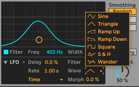 Erosion is an original Live v1 effect, and I believe its interface and sound haven’t changed noticeably since that first release — until now. An updated interface helps you to discover more about its unique processing capabilities, and there are some new features, as well, like continuously-adjustable stereo width.