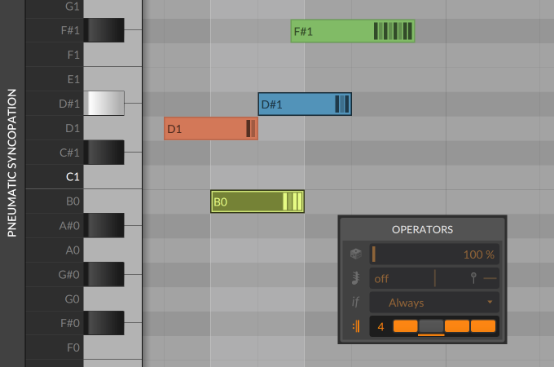 Operators are rules triggered by note and audio events – so think “trigs.” They represent the continued evolution of the DAW from something that has everything frozen in time and, well, boring, to an environment that’s more generative and dynamic.