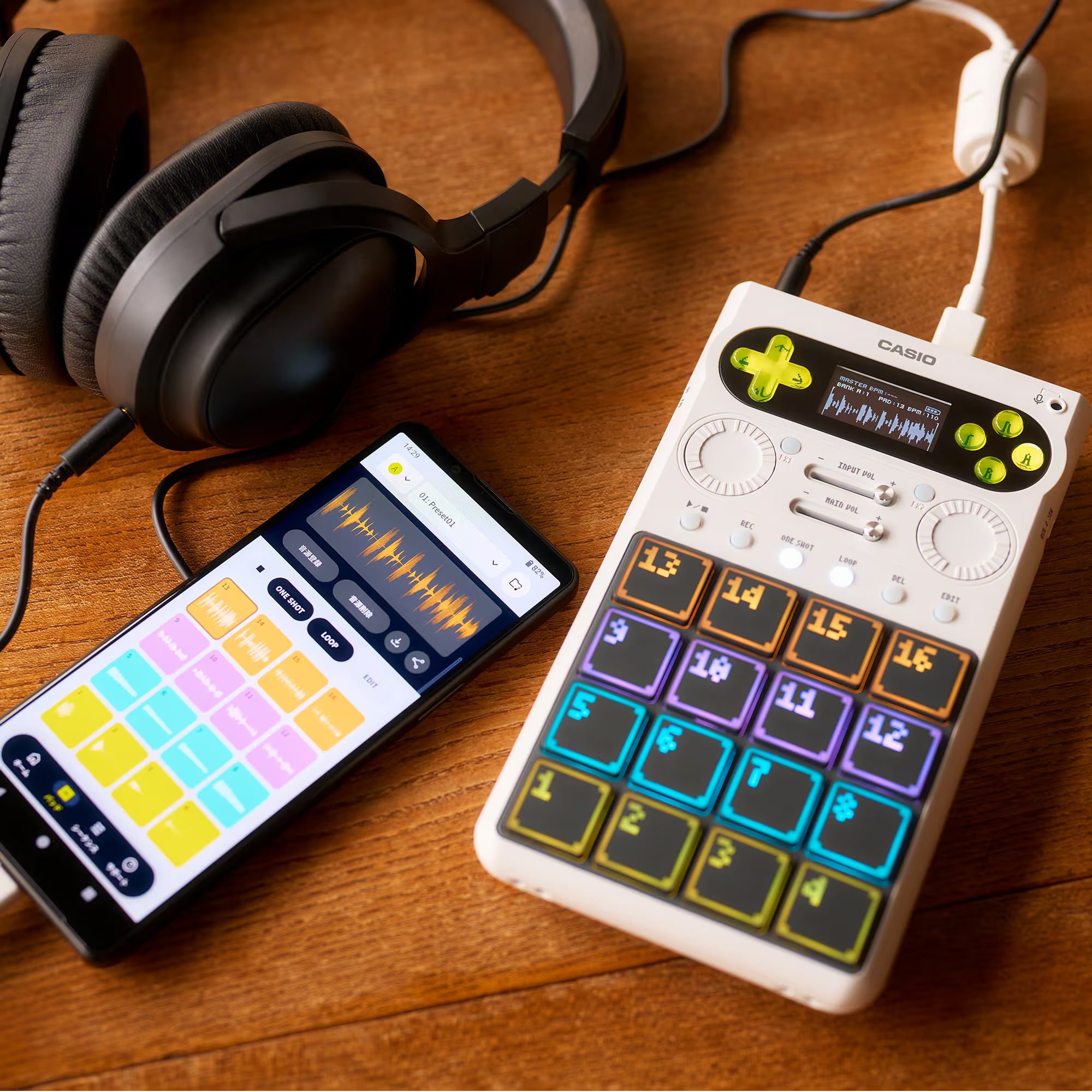 There’s a lot in here. The one feature I see other media seem not to pick up on is the two jog wheels, which Casio says you use to control effects. And while it appears the SXC-1 works perfectly happily standalone, they’ve also designed this to use your smartphone alongside it.