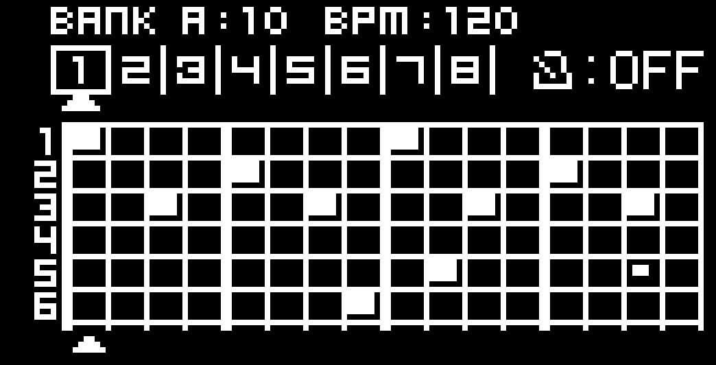 - Real-time REC input, step sequencing, and this cute, detailed sequence screen with up to 50 patterns of 8 bars each.