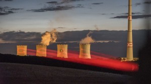 Climate crisis, shown directly on power plant, in guerrilla projection