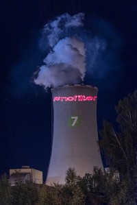 Climate crisis, shown directly on power plant, in guerrilla projection