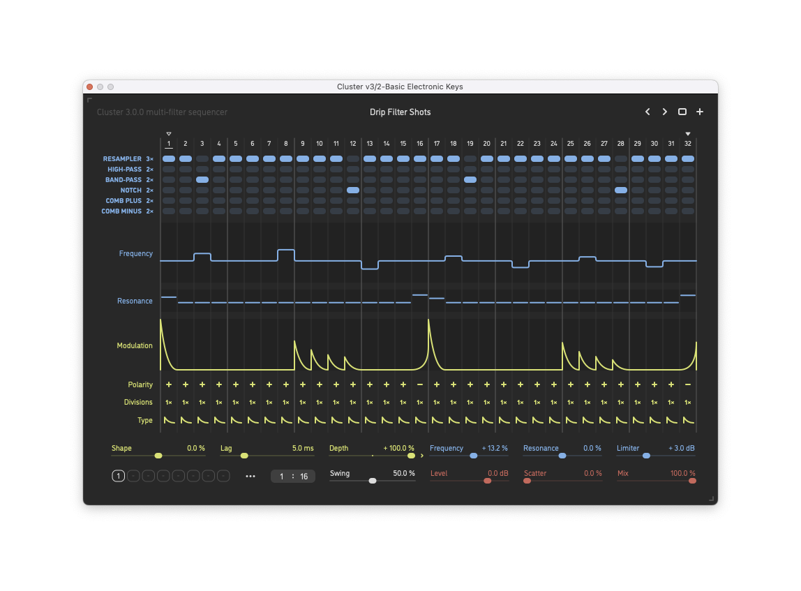 Cluster multi-filter sequencer – AU/VST3/AAX