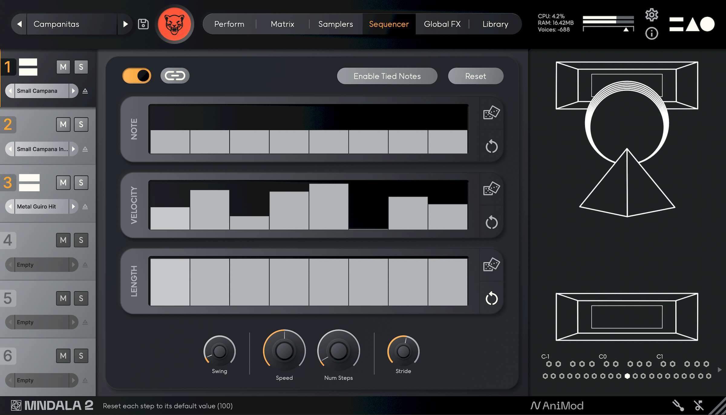 There’s also an extensive sequencing engine, which you can use together with the sample slots to animate the sounds and add some dynamism. Brian’s background he tells me is in gaming, and you get that right away – the variations and generative qualities here are reminiscent of game audio and its real-time demands. You can really approach El Jaguar ad MNDALA in that way, to keep samples from becoming stale, making them more immersive. (Apologies for the term; I realize it’s coming up in a lot of conversations. Zeitgeist, perhaps.)