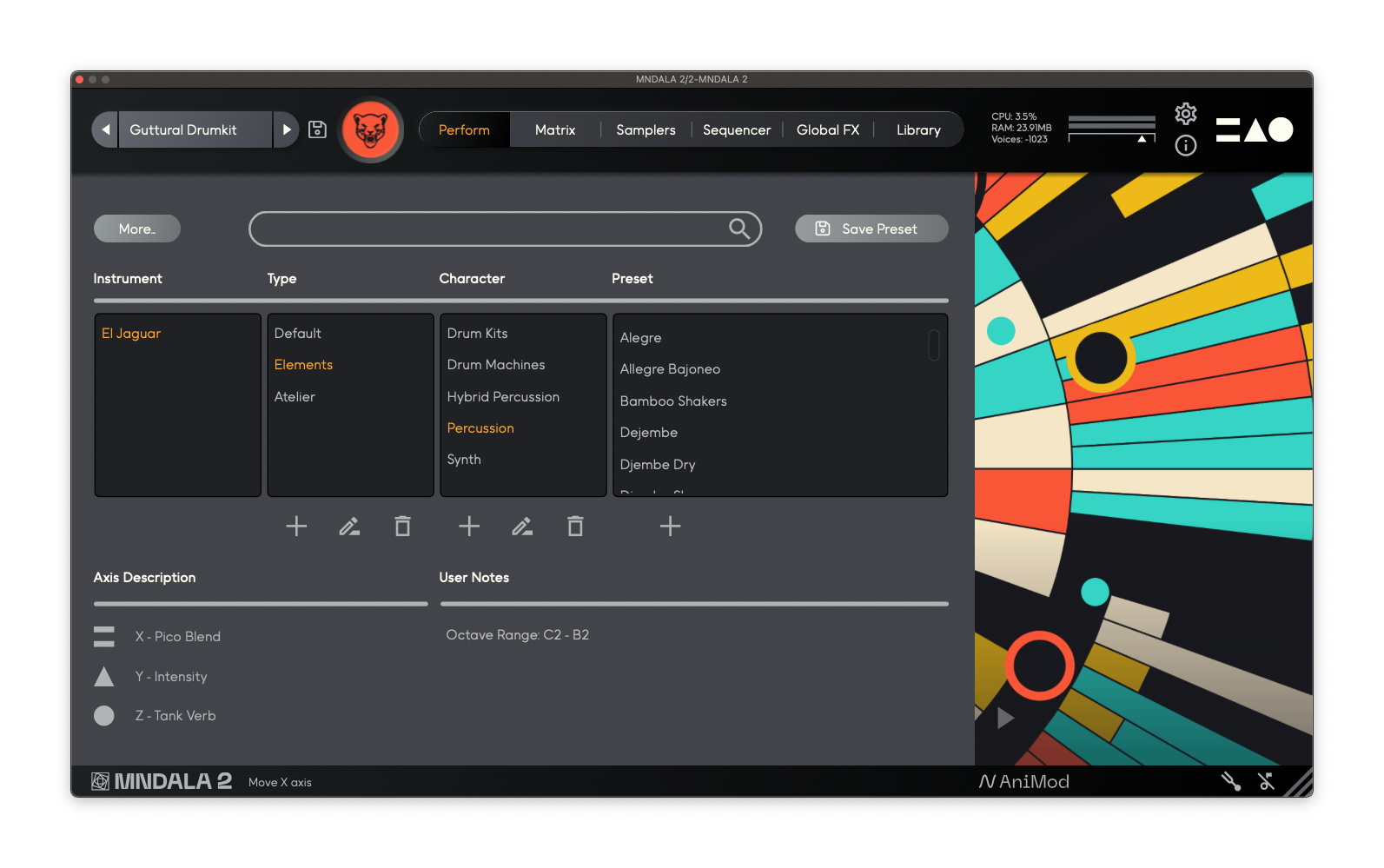 The trick is, you can use that mic info and modulation to control the mic settings – as if you’re there, though also in this trippy geometry-moving way, too, that is very MNDALA-specific. Here’s a terrific demo by Venezuelan producer Carlos Peña: