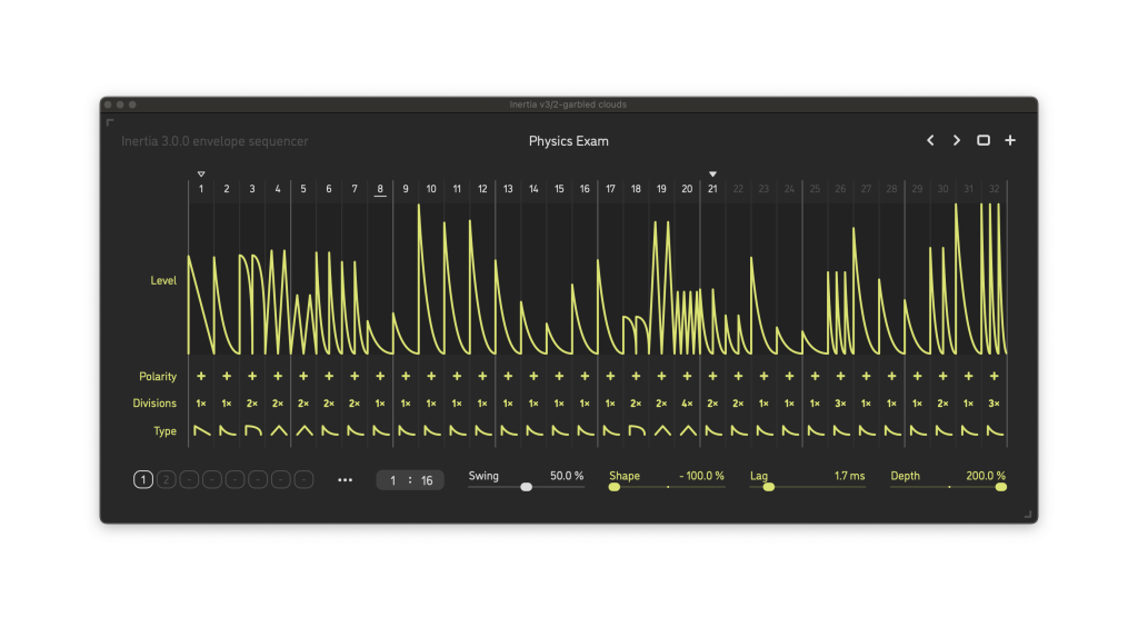 Inertia v3 is the newest addition, an envelope sequencer combined with a silky-smooth filter.