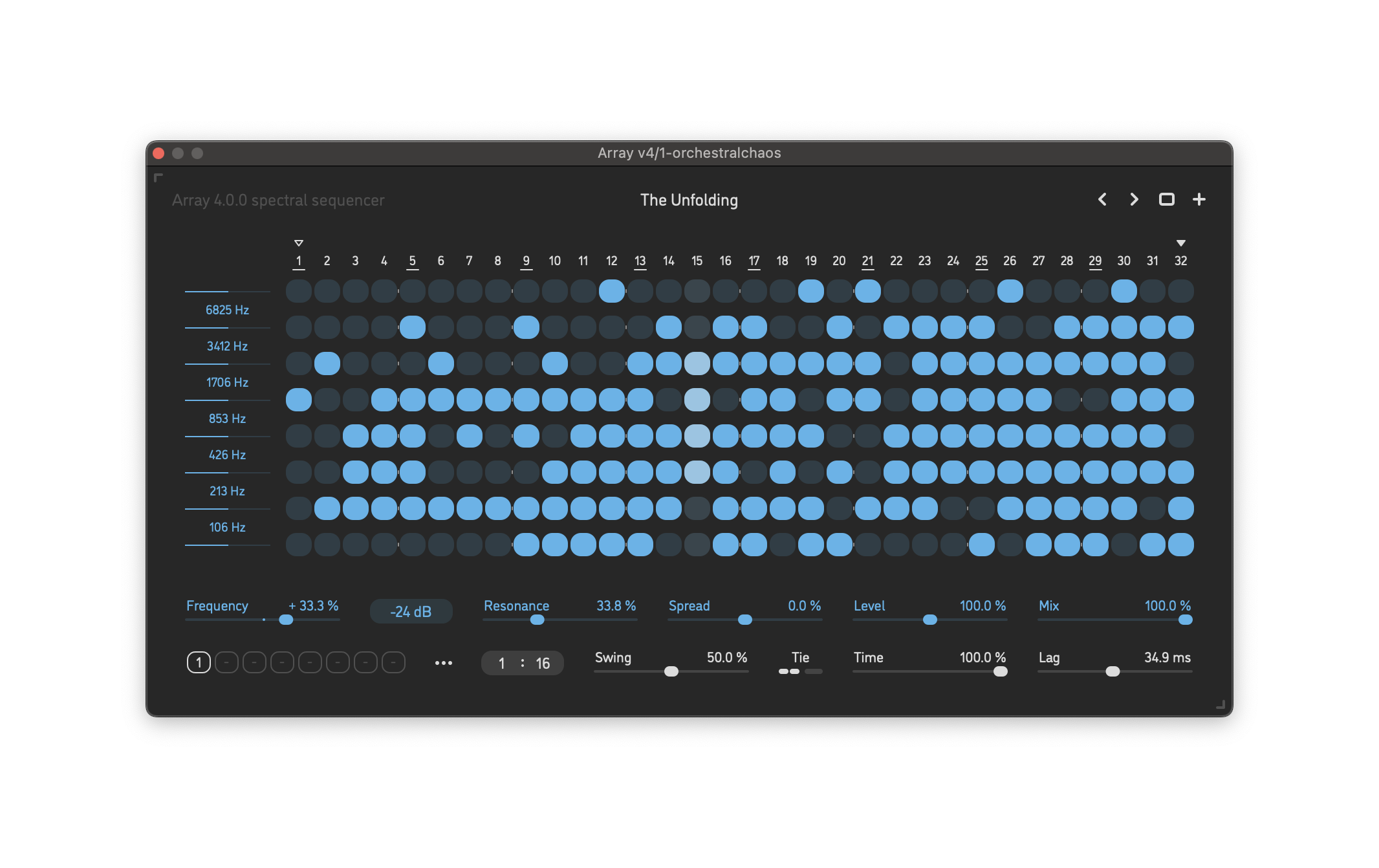 Array v4 uses an array of rows as frequency bands — so, you still have sequenced gates, but by frequency band, with additional per-band controls for slope and resonance.