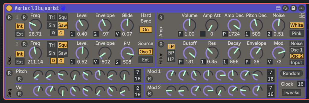 Vertex is loosely based on the Moog DFAM. I should warn you that this is not going to make you want a DFAM any less. That instantly reminds me of the fun of tweaking the hardware. But sticking this inside Ableton Live has its own pleasures. The always-running sequencers can be assigned anywhere, even before you mess with outside modulation. You can easily drop this inside a Device Rack and map controls as you wish for your controller — there are a few ways I could imagine approach macros. And Tom has rounded this out in a way that makes sense in software.