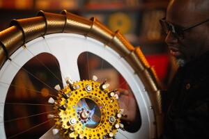 Lethelium, a 24-string instrument fashioned from a bicycle wheel