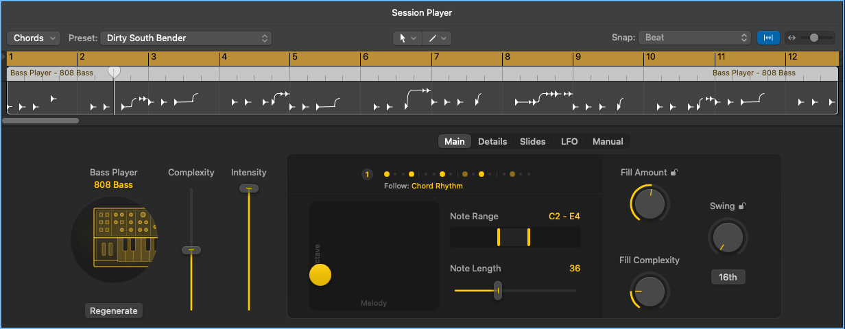 There’s a trick here: when you create the Player, be sure to untick “Use Default Chord Progression for New Regions.” (It’s selected by default.) Otherwise, this will have the Session Player just start playing its own progression, ignoring the Chord Track. (Yeah, we’ve all had session players like that…)
