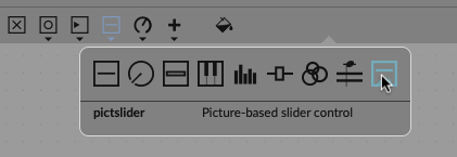So let’s look to the Max side. Max has some UI elements of its own, and you may have noticed they do render and work interactively in the Max for Live Device once you place them inside the Device limit or in Presentation Mode. Under the Sliders item on the toolbar, you’ll find something called pictslider: