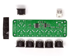 This is the new MeeBlip thru5 kit, a cheep and cheery MIDI splitter