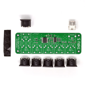 This is the new MeeBlip thru5 kit, a cheep and cheery MIDI splitter