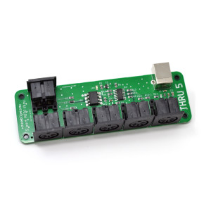 This is the new MeeBlip thru5 kit, a cheep and cheery MIDI splitter