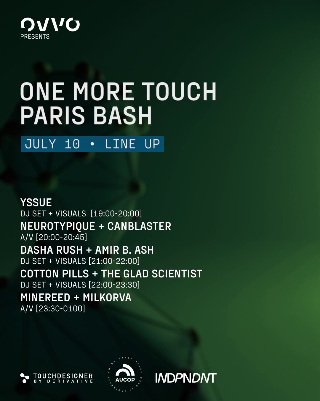 But we didn’t want to stop there. The following night, with the support and help of INPNDNT PARIS, a community-driven initiative founded by visionary festival organizer Slava Kostyakhin, we hosted an after-party with a stacked lineup of live A/V performances including Dasha Rush, Neurotypique, Canblaster, Milkorvaa, Yssue, The Glad Scientist, Cotton Pills and Minereed. If the event was about learning, the after-party was about letting loose, proof that Paris has both the talent and the appetite for this scene. Across two nights, connections were made, collaborations were sparked, and more than a few mentions of “We should do this more often” were exchanged.