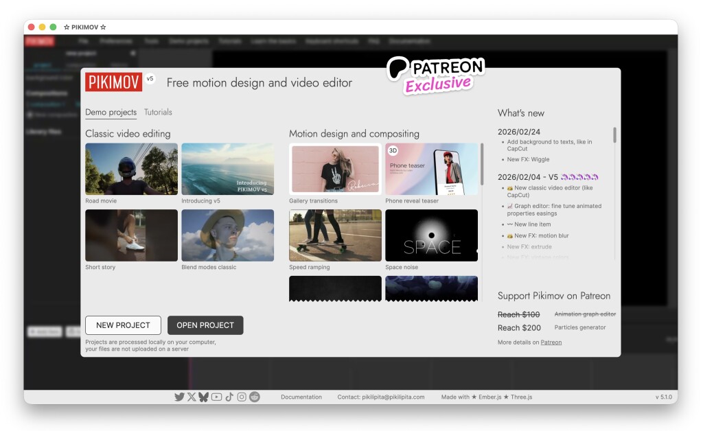 Pikimov 5.1.0 is now available as an offline app, bringing all the browser-powered video editing and motion graphics powers of this tool to a standalone tool — no internet connection required. The browser version is free forever; for offline capabilities, you need to pay $6 a month (no commitment).
