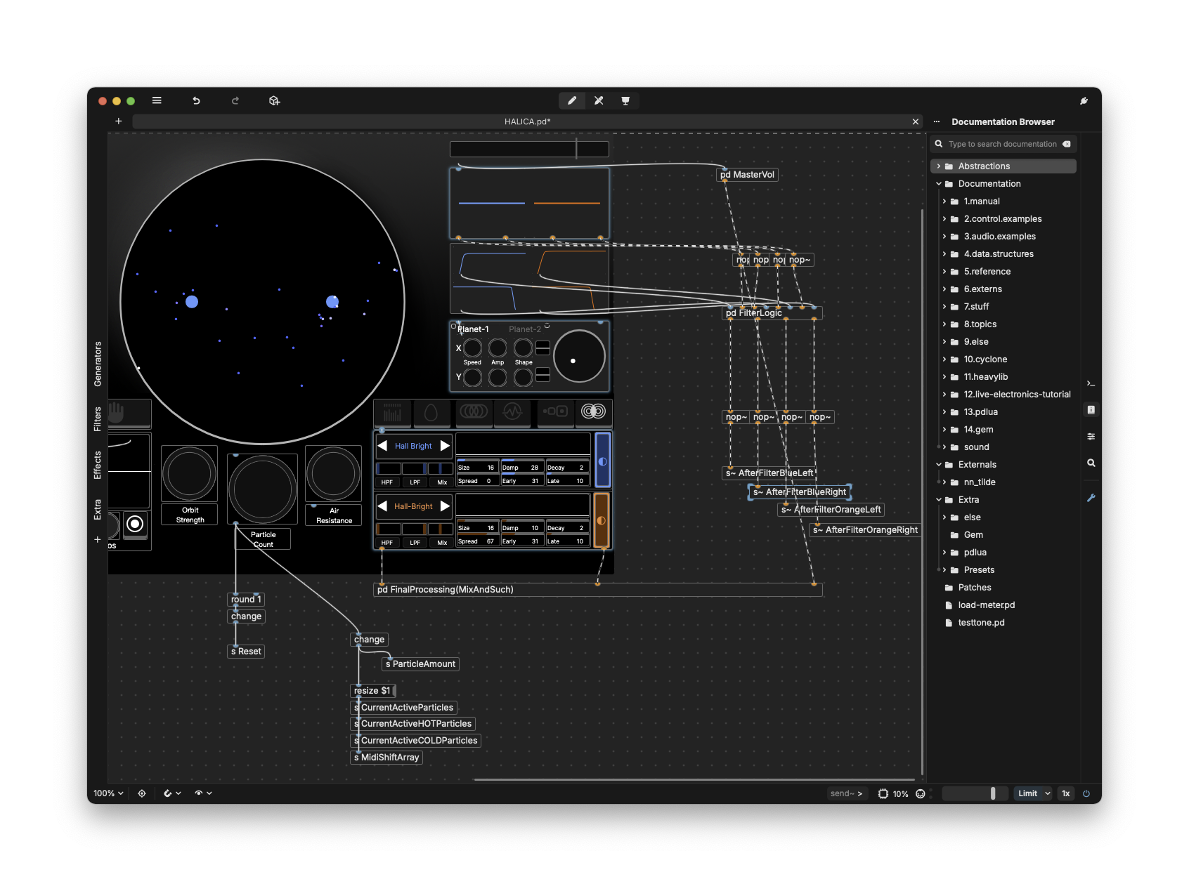 Improved interface. Welcome panel, limiter and oversampling controls, and inspector parameters were all improved, plus the ability to see the inspector and console at the same time — nice! (courtesy @AlexMitchellMus) There’s a cute miniview, as well, to keep your sense of where you are in the patch (especially on bigger displays), like the minimap in games.