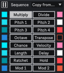 Individual sequence lanes, each with color coding and toggle switches. These are going to be mostly self-explanatory, but it’s particularly powerful having multiply and divide lanes, in addition to the per-lane overrides, for creating extra syncopation or rhythmic permutations.