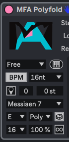 Output settings let you constrain by scale, base note, transposition, and clock and division. Tuning isn’t explicitly defined in Polyfold, but the Device is MPE-aware, so you can set the Tuning System in Live and then choose the appropriate “scale” (really, pitch collection) mapping you want — or just choose chromatic, which will also work with other tuning tools like MTS-ESP.
