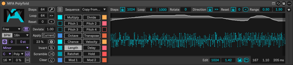 Developer Noah Pred has made a mind-bogglingly large library of step sequencers and generative tools, but while I’ve admired that work, this is the first one that really clicked for me. For all that precise control, Polyfold lets you work quickly. It’s a way to work with long-form patterns but in ways that go beyond what you can do with static clips. It’s the tweakability of a step sequencer with the open-ended depth of a pattern clip.