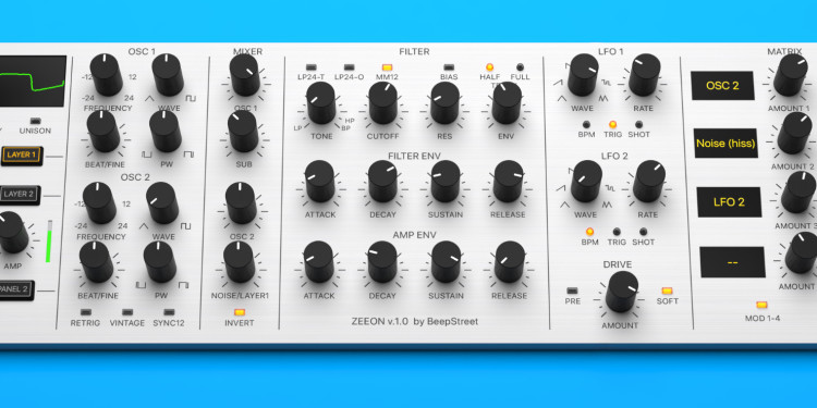 Zeeon synth is a new virtual analogue synth from BeepStreet, powered by an advanced analog circuit modelling engine and modelled on iconic vintage synths
