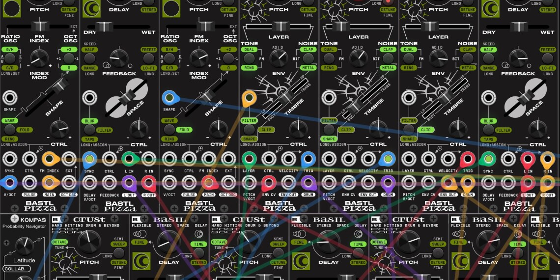 The free and open source VCV Rack ports of Bastl’s delicious PIZZA family now include the original Pizza oscillator, Crust drum/percussive voice, and Basil stereo delay. Endless patching pleasures await with these (and don’t forget the free KOMPAS “probability navigator,” too).