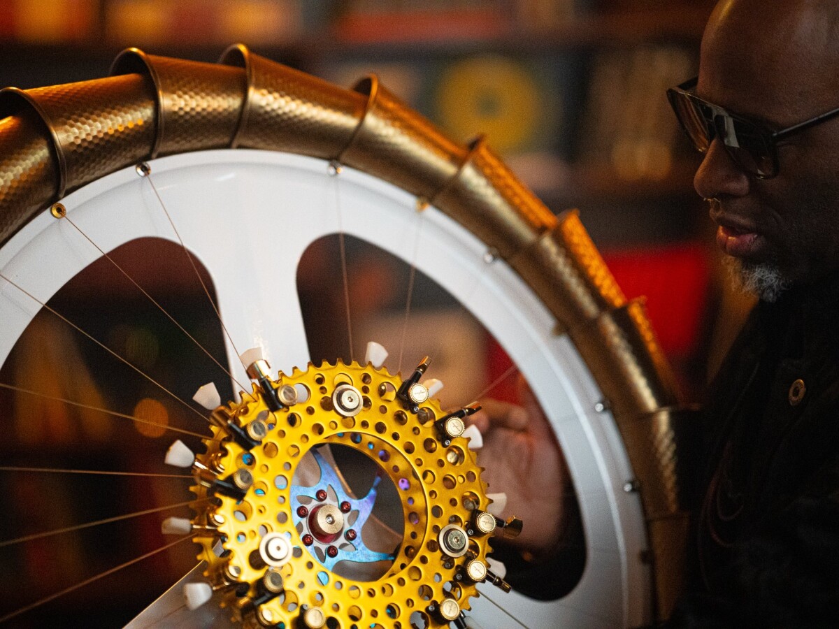 Read moreYou can pluck it, strike it, bow it, use your fingers, use a pick. The Lethelium is upcycled from bicycle parts and imagined in a cycle-punk zombie comic where bike parts save civilization. And all of this could only come from the imagination of Montreal artist Lateef Martin, an artist who lives a sci-fi reality others might only dream of. Or as Lateef puts it: “it reinvents the wheel.”