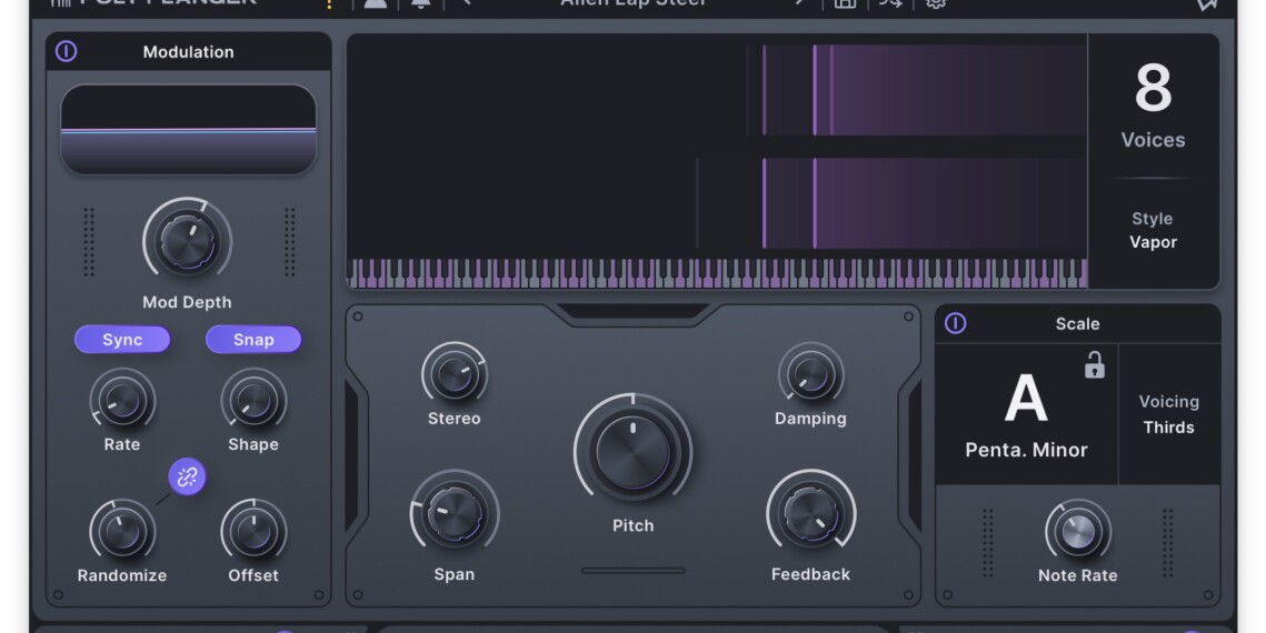 Minimal Audio’s Poly Flanger is a “musical” stereo flanger — with tuning options, scale quantization, three modes, and 1-8 voices, plus deep modulation and timbral options. “Flanger” is accurate, but almost unfair — this is a deep 8-voice comb resonator that you can set in key with your project or turn into a liquid, sound-transforming, even glitchy beast. Here’s a deep-dive guide to how to get the most out of it.