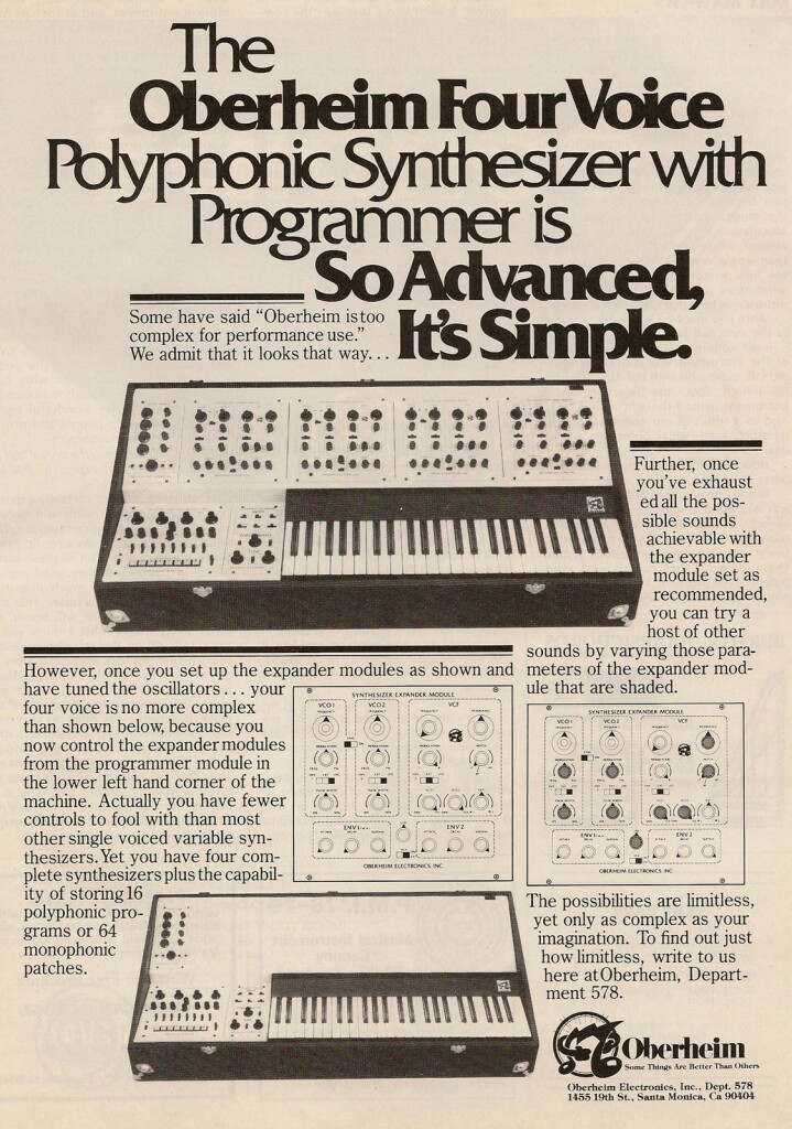 Dave’s [Sequential] Prophet-5 really lit a fire, lit a rocket. I had to answer that because my 4-Voice and 8-Voice had been a nice income stream from 75 to 78. But by the end of ’78, it had pretty much gone to zero. And in response to that, we did the OB-X… then the OB-Xa, OB-8, Matrix…