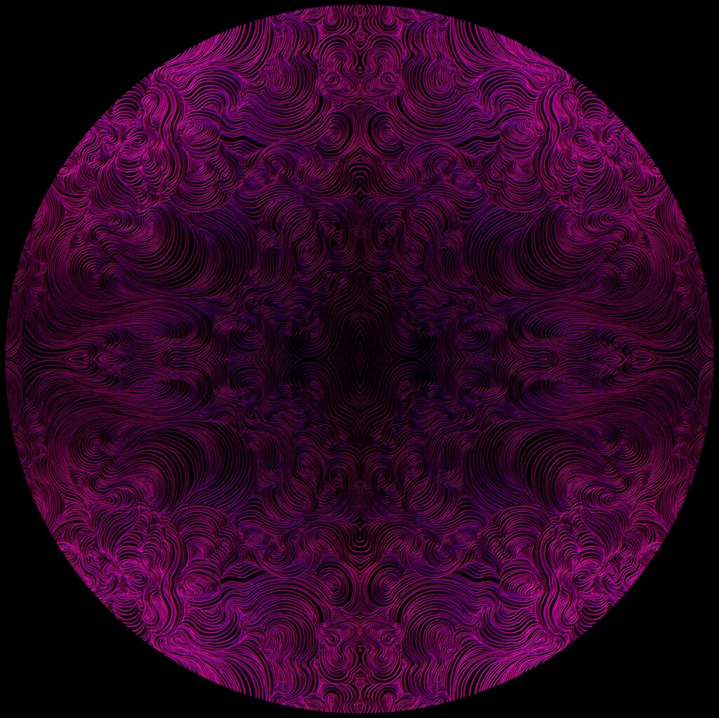 The macrostructural image of the projection—unchanging throughout the piece—is my pencil drawing Composition 2016 No. 1, photographed under a specific angle of light so that the thin graphite lines reflect maximally. The image was then digitally separated into red and blue channels, offset by just a few pixels to produce magenta as a resultant tone. Magenta does not correspond to any single wavelength in the visible spectrum, which exists only as a perceptual construct created by the visual system’s synthesis of red and blue in the relative absence of green. In this sense, magenta behaves analogously to an acoustic “combination tone,” emerging from emerging from the interaction of two distinct frequencies.